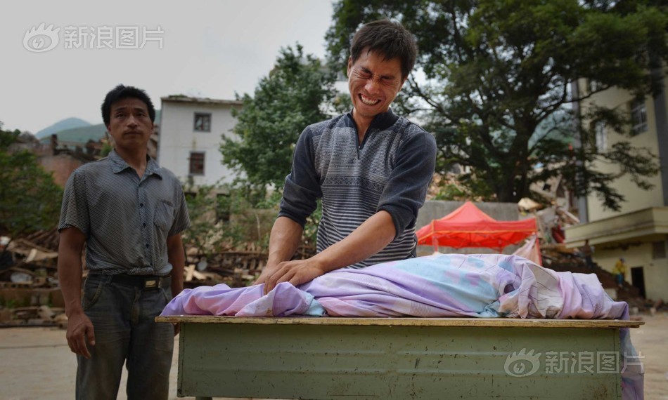 2014年8月4日,云南昭通市鲁甸县发生6.5级地震,一位在地震中失去孩子的父亲,面对孩子冰冷的尸体,紧紧地握住他的手。摄影:杨赋