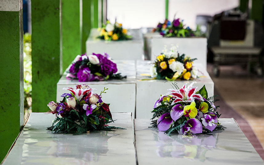 在Sultan Imanuddin医院,人们为亚航客机遇难者准备好棺材。
