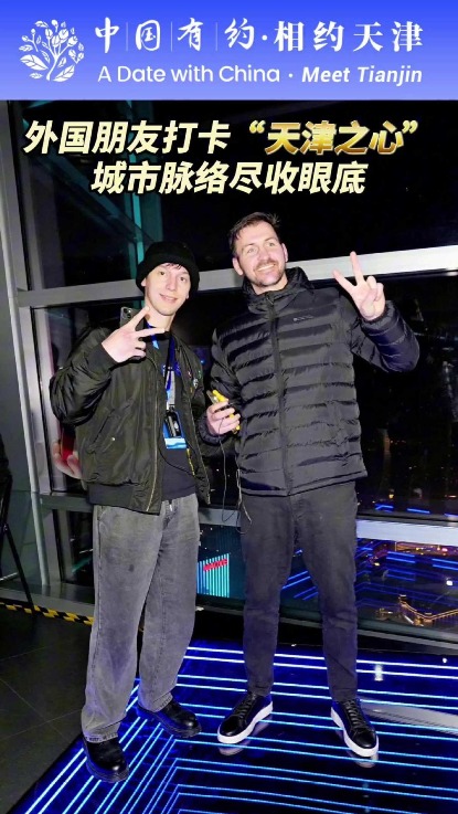 “天津之心”是华北首个300米以上的城市高空观光厅,依托天津中心城区城市天际线的制高点,以其独特的360°高空观景设计为游客提供前所未有的沉浸式观景体验。外国朋友们在这里拍照打卡,欣赏城市夜景。2025-12-18 09:34