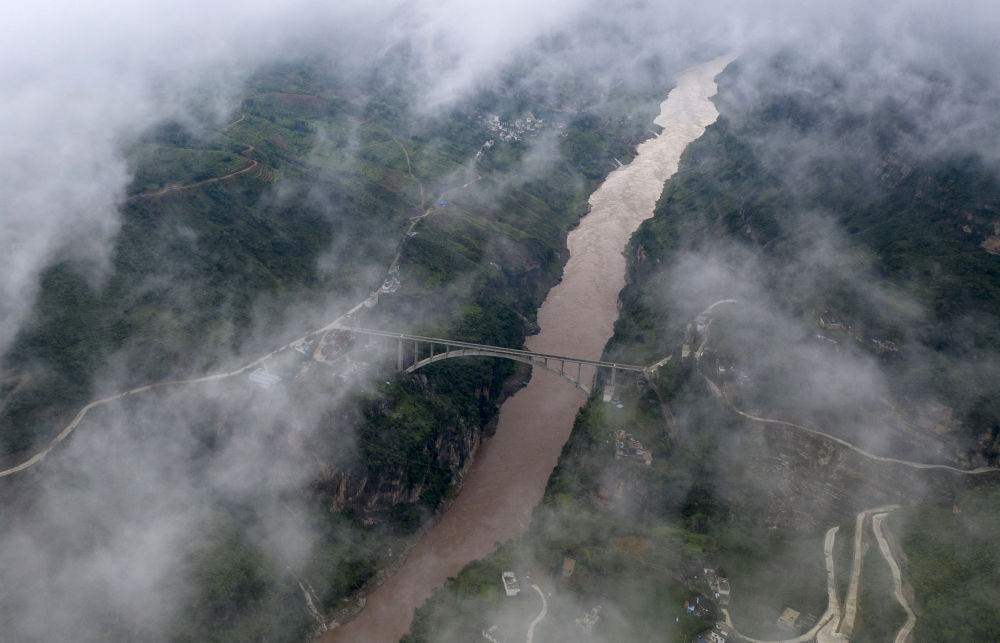 横跨金沙江的大桥(新华社记者江文耀2020年8月14日摄,无人机照片)
