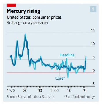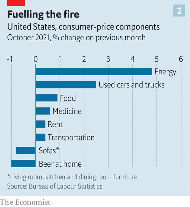 中国日报网12月6日电 据英国《经济学人》报道,如果一个美国老百姓在上个月看准时机购入新沙发,晚上坐在新沙发上喝啤酒,那他很幸运了。家具和啤酒的价格都比几周前便宜了不少,但不幸的是,他也可能苦恼地发现,几乎其它所有的东西——房租、汽油、食物,甚至沙发旁边那株新绿植——通通都涨价了。经济学家开玩笑说,通胀的最佳水平是人们注意不到。美国的通胀情况正变得越来越明显。与2020年同期相比,10月的消费者价格指数上升了6.2%,创下30多年以来的最高纪录(见表1)。