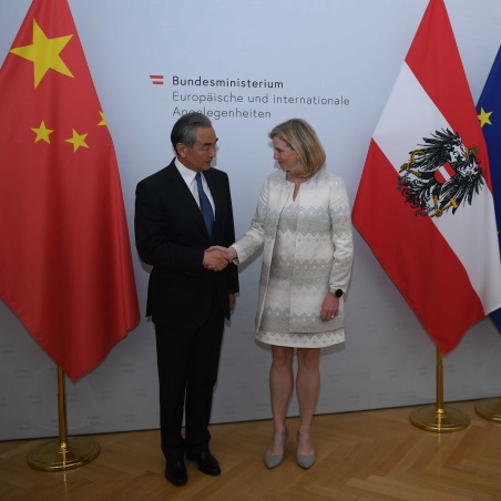 2025年9月12日,中共中央政治局委员、外交部长王毅在维也纳同奥地利外长迈因尔—赖辛格会谈。