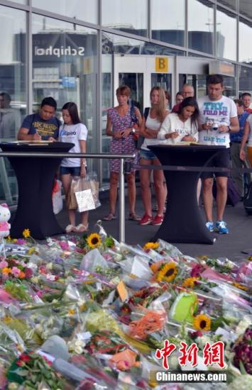 当地时间7月20日,马航MH17航班机毁人亡的惨剧已事隔三天,但荷兰依旧沉浸在痛失192名同胞的悲伤氛围之中。在市政厅、教堂、机场等各种场所,民众不断自发地以多种方式悼唁罹难者。图为民众在斯希波尔机场排队留言哀悼死难者。中新社发龙剑武 摄