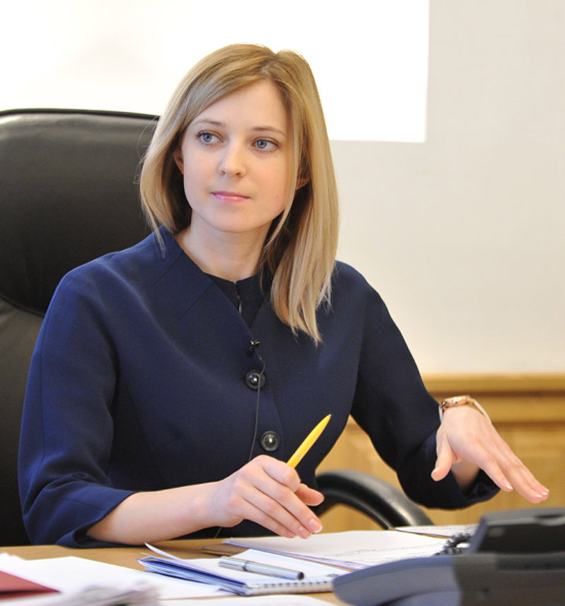 当地时间2014年3月19日,克里米亚辛菲罗波尔,克里米亚检察官娜塔莉亚-波克隆斯卡娅(Natalya Poklonskaya)在她的办公室。娜塔莉亚-波克隆斯卡娅于2014年3月11日被任命为克里米亚自治共和国新一任总检察长,这位美女检察长一经亮相立刻获得了广大网友的一致好评!波克隆斯卡娅出生于1981年,政治立场亲俄罗斯的她曾担任克里米亚首府辛菲罗波尔的检察员,主张克里米亚回归俄罗斯。她还曾经对今年2月上台的乌克兰现政府做出过尖锐批评。