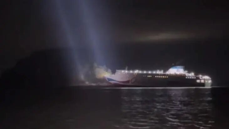 当地时间19日,一艘载有260人的客轮在位于韩国南部珍岛附近搁浅,海警正在进行救援工作。2025-11-19 21:00