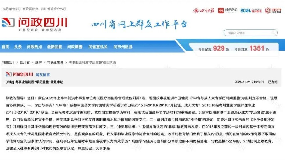 12月3日晚,四川射洪市人力资源和社会保障局发布情况通报。2025-12-04 10:13